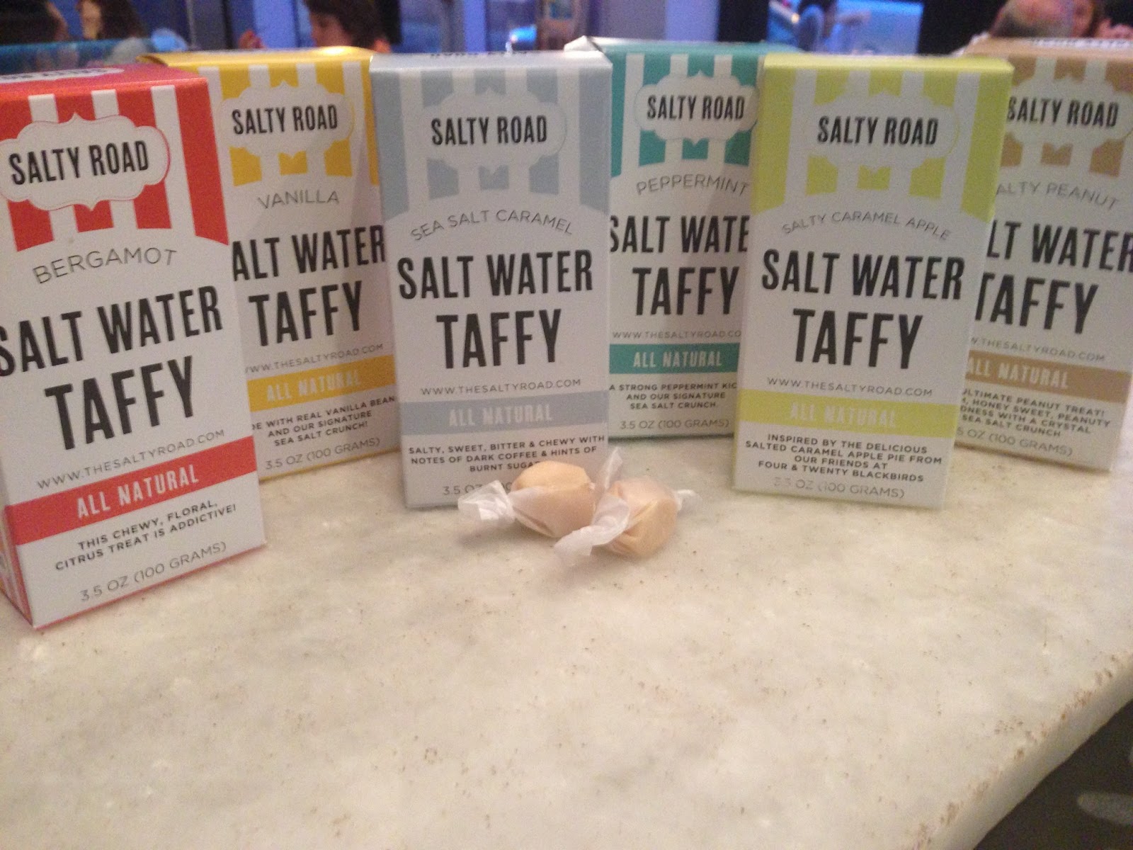 We've got a new candy product in town. Until now my favorite candy item we stock at 13th St has been the Little Flower Salted caramels. The salty sweetness is perfectly balanced and they are very soft and melt in your mouth. A little taste of heaven. However, there might be something close to a tie since we have introduced Salty Road Salt Water Taffy to the counter. These come in 6 salty sweet flavors and they are awesome!!!